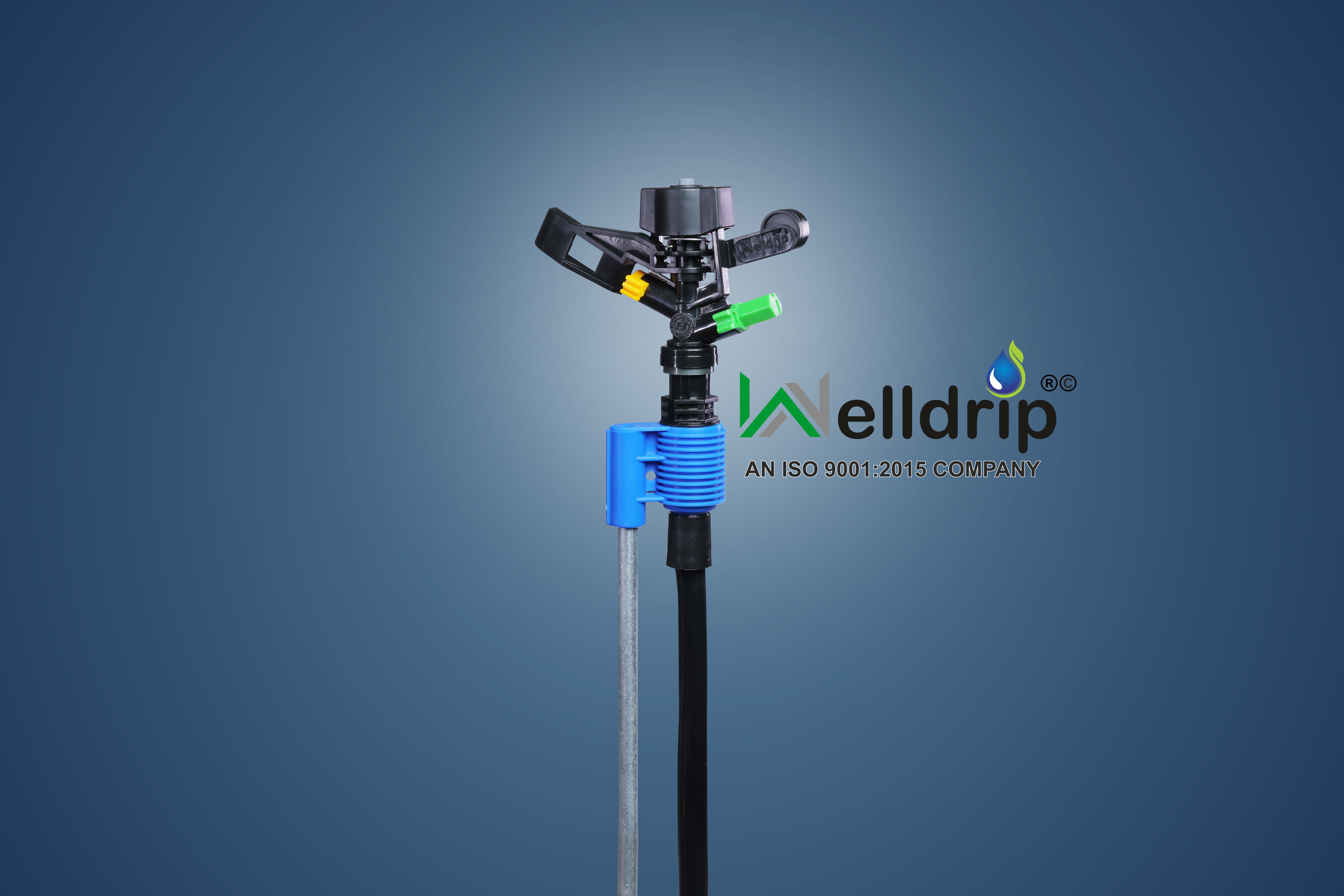• The Welldrip Mini Sprinkler is a compact and powerful irrigation solution that delivers consistent water spray with minimal water usage. Ideal for vegetable fields, flower beds, fruit orchards, and nurseries, this sprinkler works efficiently at low operating pressure (1 to 2.5 bar) and covers a spray radius of up to 5 meters. It supports a discharge rate of 30–100 liters per hour, helping maintain balanced soil moisture without wastage.