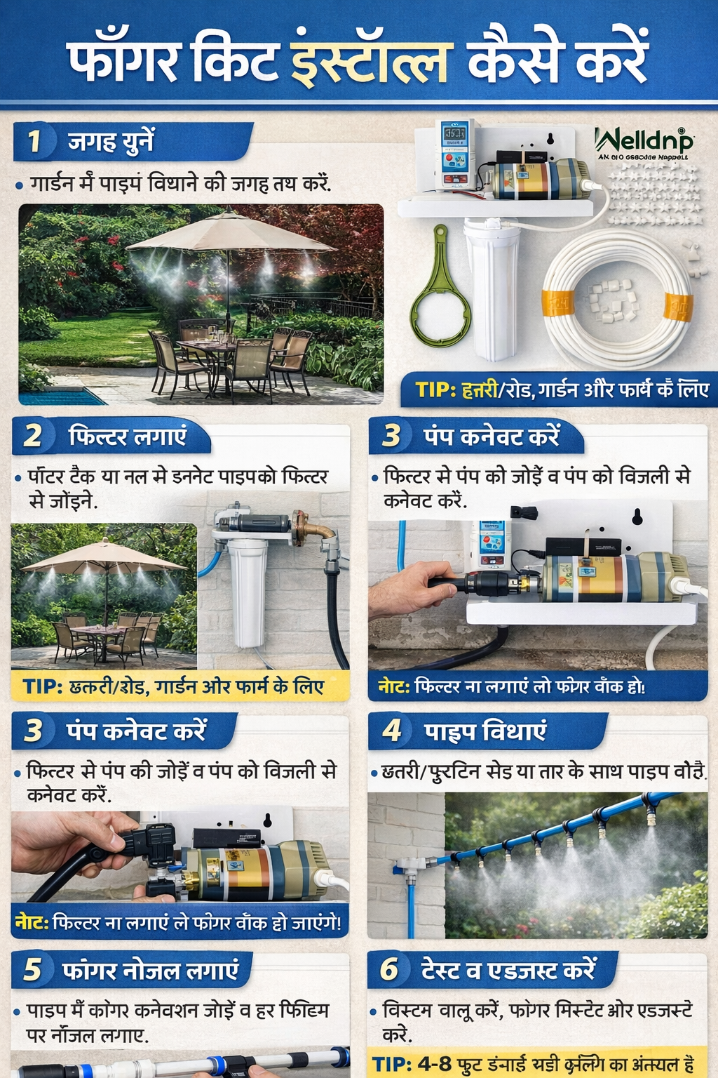 Free Consultation: Hum aapke farm ya garden ke size ke hisaab se nozzles aur pipe length calculate karke denge.